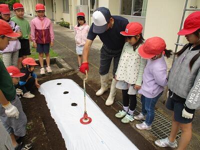 鞍岡小では、毎年地域の方の協力を得てパプリカを育てています。パプリカは2mほどの高さに育つそうです。これから水やりなどのお世話を続けて、今年も栄養いっぱい・おいしさいっぱいのパプリカを育てていきます。