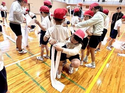 5月26日(日)に鞍岡小学校の土俵で行われる、伝統行事「すもう大会」にむけての練習です。1・2年生は5・6年生にまわしを付けてもらいました。はじめて着けるまわしに、ドキドキした子もいると思います。その後、みんなで土俵の入り方や四股の練習をしました。「うお~!ヨイショ!」と元気なかけ声でドスンと四股をふむ子どもたち。これからそれぞれが四股名を決めたり、練習をしたりして、すもう大会に向けてがんばっていきます。