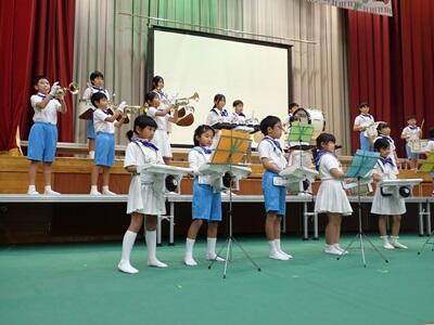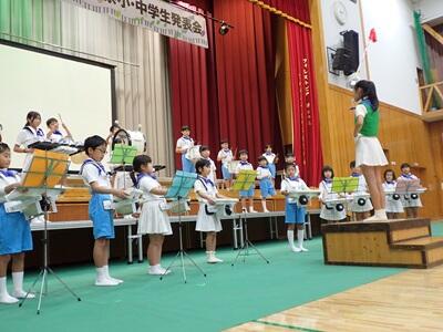 10月28日(火)町教育文化祭小・中学生発表会が五ヶ瀬中等教育学校で開催されました。町内の4校の小学生と2校の中学生が合唱や合奏を披露しました。本校は鼓笛隊として出演し、「おどるポンポコリン」「となりのトトロ」の2曲を演奏しました。