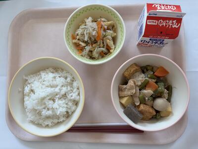 麦ごはん 厚揚げの中華煮 かふう和え 牛乳