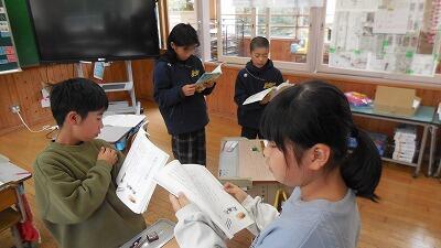 4年生の国語は、説明文の学習をしています。中心となる語や文を見つけて要約し、調べたことを書くことがねらいです。まずは、文章を正しく読みます。友達と読み合い、音読の力を身に付けます。