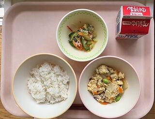 今日はこれから旬となる夏野菜を使って、みそ炒めを作りました。ナス、ゴーヤ、ピーマンなど、子どもたちの苦手な野菜が多く入っていたので、食べ終わらず苦戦している子どもが数名いました。旬の夏野菜は、夏の暑さから私たちの体を守り、健康を保つ栄養が豊富に含まれています。苦手な野菜にも少しずつ挑戦して欲しいと思います。