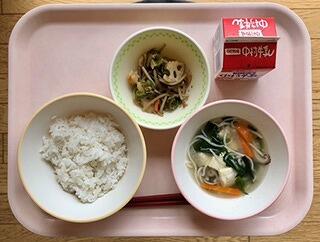 牛乳今日は、1年生にとって小学校で食べる初めての給食でした。給食の時間前からお腹が空いた子どもたちもいたようで、6年生に準備してもらった給食を、一生懸命食べていました。早く小学校の給食にも慣れて、元気に楽しい学校生活を送ってほしいと思います。