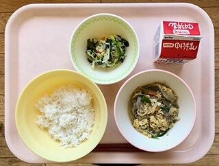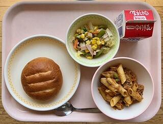 春は眠い・・・と言われますが皆さんはどうですか?暖かくなって体の働きが活発になると、エネルギーをたくさん作らなくてはなりません。エネルギーを作るのに使われるのがビタミンB群です。そのためたくさんのエネルギーがいる春にはこのビタミンB群が足りなくなってしまいます。足りなくなると疲れたり、眠くなったりします。新しい環境で体も心も疲れています。今日のソース炒めに入っていた豚肉はビタミンB1が豊富です。ビタミンB1で疲れと眠気を吹き飛ばして、元気いっぱいの新学期を過ごしてほしいと思います。