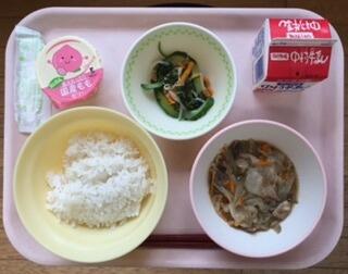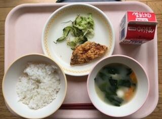 今日の給食は、ご飯、煮物、和え物、汁物という「和食」です。平成25年に、「和食」がユネスコの無形文化遺産に登録され、和食は世界中から注目されています。日本では、季節や地域ごとに、新鮮な食材を生かした料理が昔から作られてきたことが魅力の一つです。それぞれの季節にとれる旬の食材を使い、昆布や煮干しからだしをとり、だしのうま味で汁物や煮物を作ります。この「うま味」というものも他の国にはない食文化です。自然を大切にしてきた人たちの食文化を私たちも受け継いでいきたいですね。