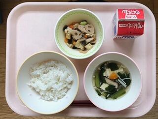 今日から1週間は「歯と口の健康週間」です。そして今月の給食では、歯を丈夫にするカルシウムの多い食材や、かみごたえのある食材を意識して取り入れています。本日の給食でかみ応えのある食材は、ごぼう、れんこん、しいたけ、こんにゃく、大豆などでした。最近では、やわらかい食べ物が増え、噛む回数も少なくなっています。かみ応えのある食品を上手に使いながら、一口30回を目標に、意識して噛んで食べてほしいと思います。
