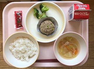 今日の給食は、手作り蒸しハンバーグでした。給食室では、材料を混ぜ合わせ、ひとつひとつかたちを整えて蒸し焼きにしました。焼きハンバーグとは違い、蒸し上げることでふっくら柔らかく仕上がりました。子どもたちにも好評だったようです。