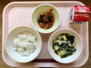 今日はキムたくごはんです。なぜ「キムたく」と言うのでしょう。それは「キムチ」と「たくあん」が入っているからです。このキムたくご飯は長野県塩尻市の学校給食で生まれた人気のメニューで、日本の伝統的な保存食の一つである漬けものを食べなくなった子どもたちに、漬けものを食べてもらいたいという思いから考えられたそうです。