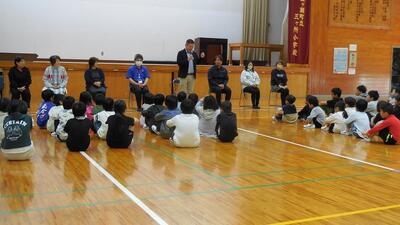 6年生は、議会による出前授業を受けました。議員の仕事や町議会のことなどについて教えていただきました。議員のみなさんの説明を聞いたり質問したりして学びを深めることができる、貴重な機会になりました。ありがとうございました。