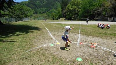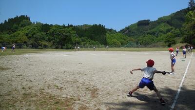 青空の下、3・4年生は、ソフトボール投げをしました。自分の体力を知り、伸ばしましょう。