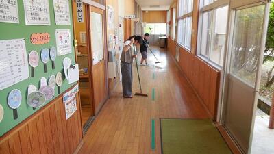 どの清掃場所でも、めあて「だ・・・だまって、い・・・いっしょうけんめい、す・・・すみずみまで、き・・・きちんとあとしまつ」でがんばっています。上級生が下級生に教える姿は頼もしいです。