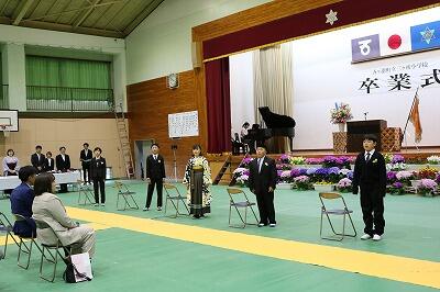 第135回卒業式が執り行われました。卒業証書を手にした5名は。将来を夢を堂々と発表しました。中学校での活躍を応援しています。