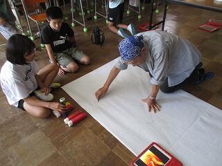 運動会の赤・白の団看板を5・6年生で作成することになり、本年度も吉田先生から直接ご指導をいただきました。