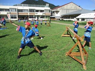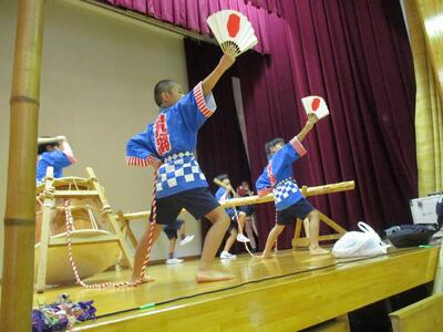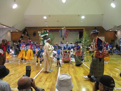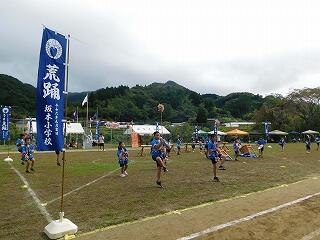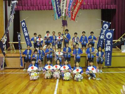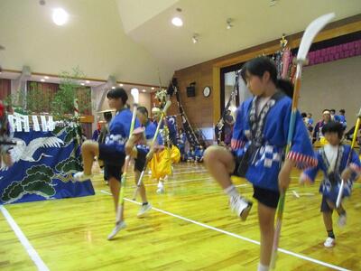 9月29日(日)に、荒踊奉納の祭りがありました。午前中は、大人たちが中登神社で奉納されました。午後は、荒踊の館にて、坂本小の子どもたち全員も交じって踊りを披露しました。子どもたちは、これまでの練習の成果を発揮したとともに、400年も続いてきた伝統あるこの祭りに参加し、改めて自分たちのふるさとに対する誇りと愛着を肌で感じ取ったことと思います。