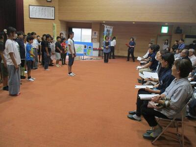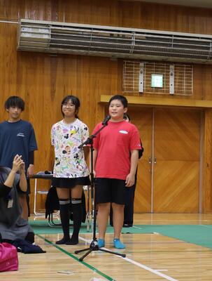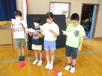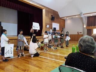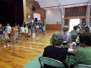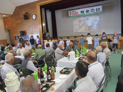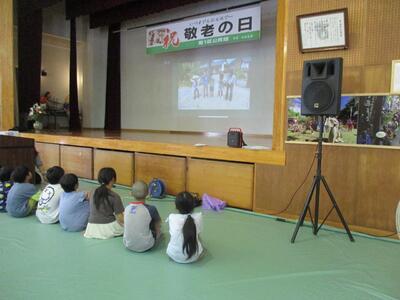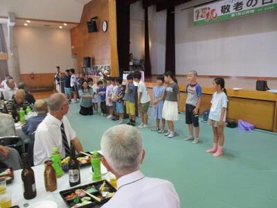 9月16日(月)に坂本一区の敬老会が開催されました。小学校にも演芸のオファーがありましたので、子どもたちが出演をしました。子どもたちは、学校の校歌や運動会の歌を歌ったり、坂本小クイズを出したり、おじいちゃんやおばあちゃんたちと会話をしてふれあったりしました。地域の皆様のみならず、私たち教職員までもがほっこりする時間となりました。