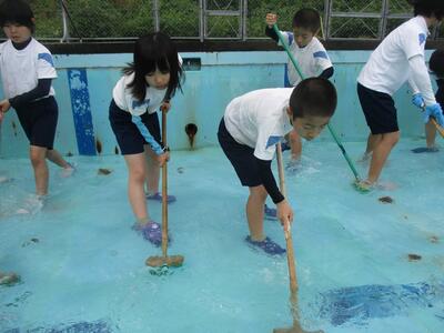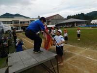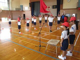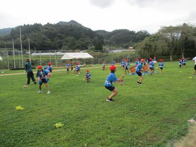 運動会の全体練習をしました。子どもたちは、暑い中一生懸命練習しました。まだ残暑厳しい日が続いていますので、水分をしっかり摂らせながら取り組みたいと思います。