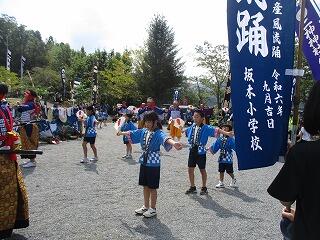 今年は、坂本小学校ののぼり旗も購入しました。中学生たちが手に取り掲げて、小学生の踊りを盛り上げてくれました。