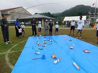 坂本音頭や来賓・地域の魚釣りでほのぼのとした場面も。