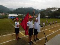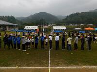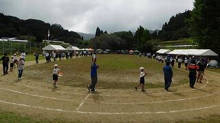 運動場中央で、児童、保護者、来賓、地域の方々で掛け声をかけてスタートしました。