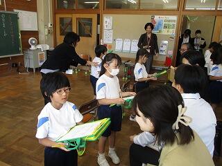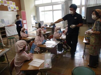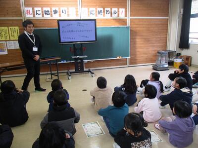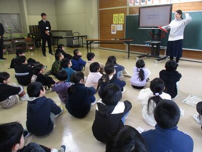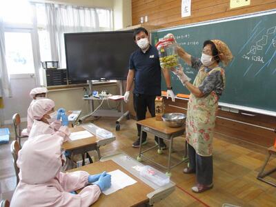 三ヶ所小学校から栄養教諭の先生が来てくださいました。今回は、低学年が食事のマナーや食器、お箸の持ち方の学習、高学年が食中毒の予防についての学習をしました。様々な資料や教材を活用して指導してくださいましたので、子どもたちも興味・関心を持って取り組んでいました。