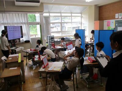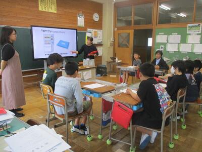 10月12日(土)は、五ヶ瀬町公立学校のオープンスクールの日でした。坂本小学校にも町外からたくさんの先生方や大学生が来られました。半日、授業を見たり時には学習の相手をしていただいたりしました。皆さん、坂本小の子どもたちの学習の様子を真剣にご覧になったり笑顔になったりしていました。