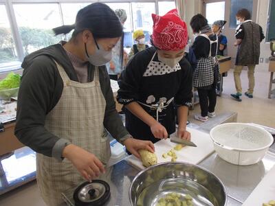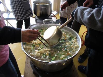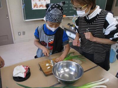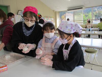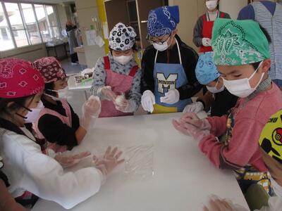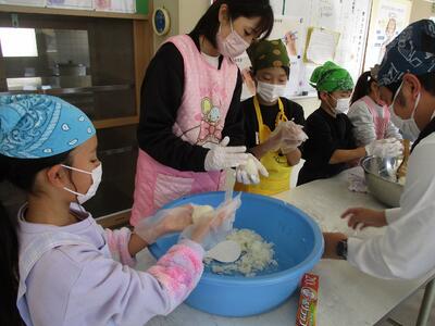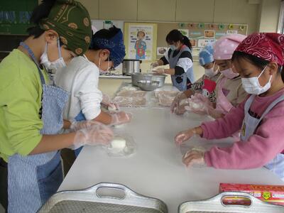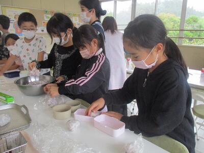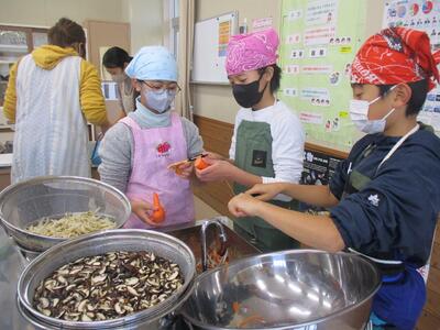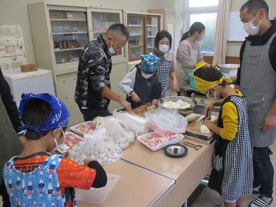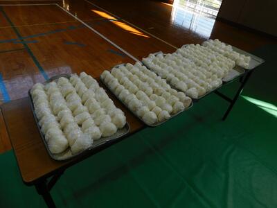 1~4年生はおにぎりを、5・6年生は豚汁を作りました。