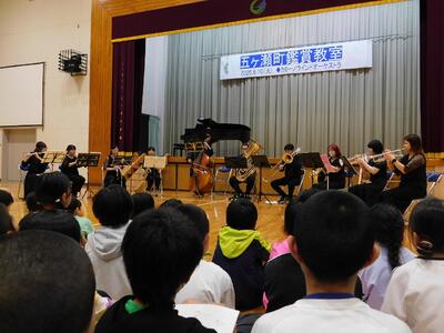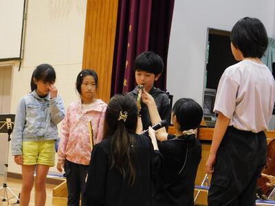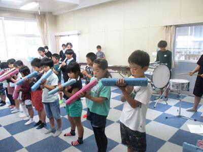 運動会が終わり、次は10月29日(火)の町教育文化祭に向けての練習(合唱・合奏)を頑張っている子どもたちです。また、今日はいきいき教室にG音楽隊の方々が来てくださり、子どもたちに、様々な楽器に触れる機会をつくってくださいました。子どもたちはいろんな楽器に触り、いろんな音を感じながら音楽に親しむことができました。
