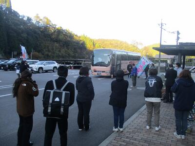 今日、町内の6年生が合同で修学旅行へ出発しました。一泊二日で大分方面へ行きます。たくさんのご家族や教職員で見送りました。夕方には「全員元気にホテルにチェックインしました」の連絡が学校へありました。