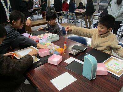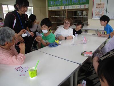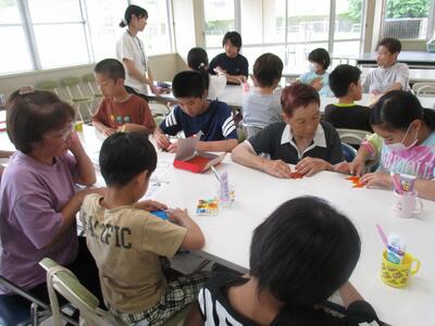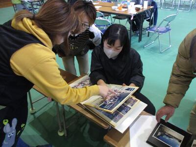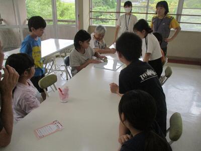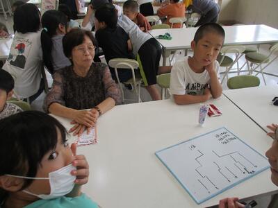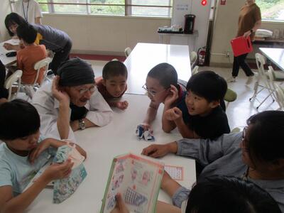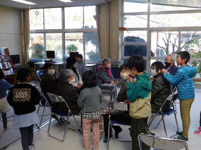 会食の後は、子どもたち手作りのふれあいコーナーで遊んだり、昭和時代のアルバムコーナーで懐かしんでいただいたりしました。