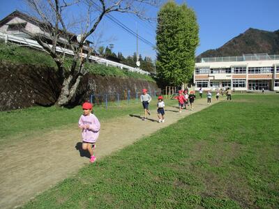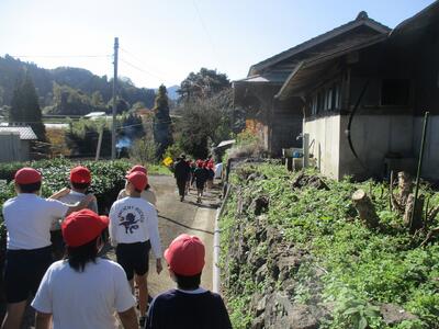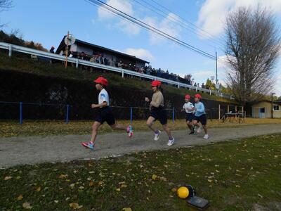 12月10日(火)は参観日の授業として持久走大会をします。走るコースは運動場と学校周辺の道路です。今日は、全校みんなで運動場を走った後、歩いてコースの確認に行きました。子どもたちは今、大会へ向けて、また自分のめあてに向かって体育や昼休みなどに進んで走っています。走ることの楽しさを味わいながら体力も付けていってほしいと思います。
