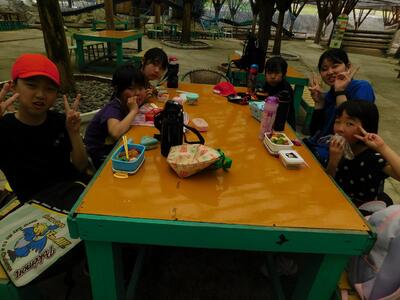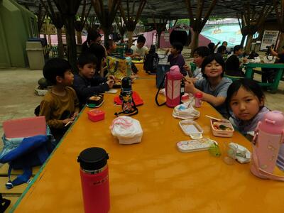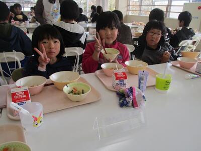 1・2年生は午前中のG授業を頑張ったので、給食をもりもり食べていました。
