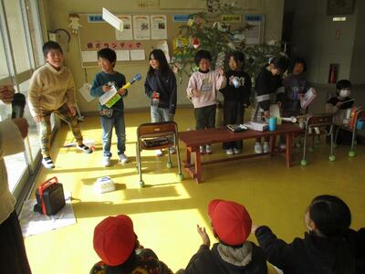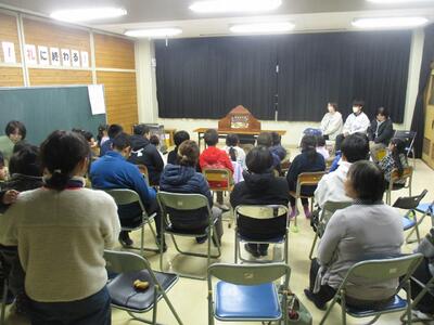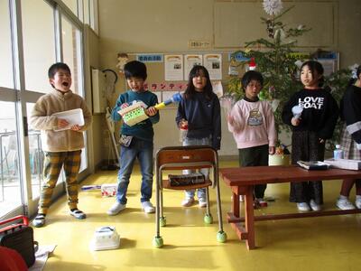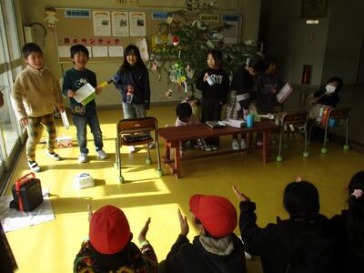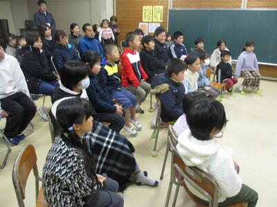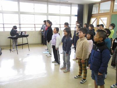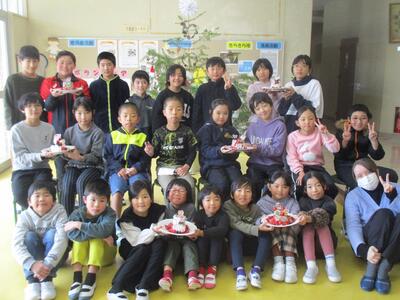 この行事は、日ごろお世話になっている地域の皆様へ児童からお礼の振る舞いをするものです。今回は、1~3年生がおにぎりを、4~6年生が豚汁を作りました。食材は、1・2年生が学校の畑で作った野菜を使ったり坂本地区で作られたものを安くで分けていただいたりしました。また、子どもたちが合唱や合奏も披露しました。今日は朝から冷え込みましたが、子どもたちやご来校くださった皆様の笑顔がたくさん見られ、心温まる一日となりました。