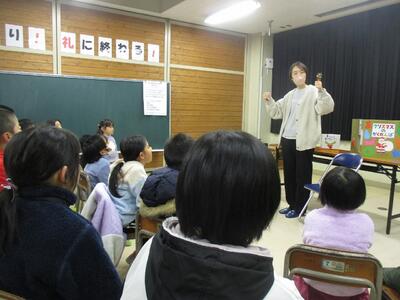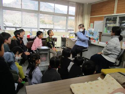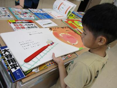 低学年は、絵本の絵やお話に反応しながら、楽しそうに過ごしていました。