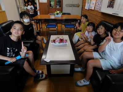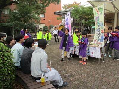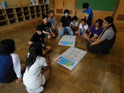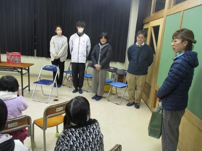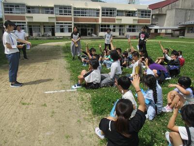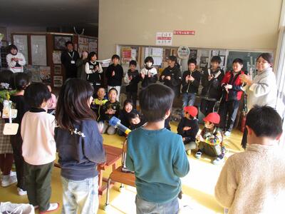 町内の5・6年生が、五ヶ瀬町のPRをするため、熊本学園大学へ行きました。1年生のころから豊かな体験活動で学んできたことを県外の方へ伝え、多くの人に五ヶ瀬のよさを知り、五ヶ瀬に来ていただきたいという思いでPRしました。子どもたちは、資料やPRの仕方を工夫し、大学生の関心を引いていました。PR活動後の子どもたちからは、やり遂げた達成感がうかがえました。