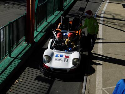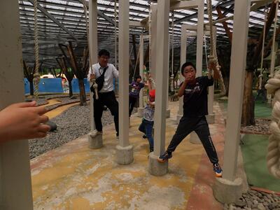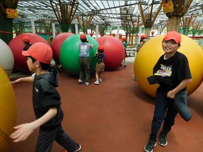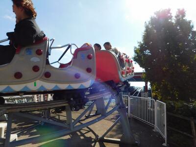 ショベルカーで砂山を削ってみよう。魚釣りもしてみよう!