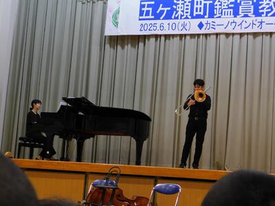五ヶ瀬町内の小中学生が中等教育学校へ集まり、意見発表や音楽発表をしました。まずは意見発表。代表の坂本小6年生が「ふるさと五ヶ瀬」という題目で、自分自身の経験をもとに、ふるさとを大切にする意義を堂々と述べました。坂本小は、合唱「気球に乗ってどこまでも」合奏「聖者の行進」を披露しました。子どもたちは、これまでの練習を発揮してすばらしい発表をしました。他の学校や中学生の発表もすばらしく、子どもたちはずっと発表に引き込まれていました。