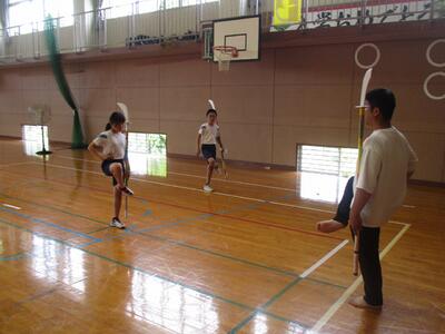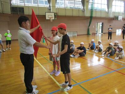 今朝は空の雲が厚く、時折雨も降っていたため、体育館で練習をしました。前半は開会式と閉会式の練習、後半は団技5番勝負の内の4つを練習しました。子どもたちみんな、いつも元気いっぱい一生懸命に練習に励んでいて感心します。疲れがたまってきていると思いますので、休日はしっかり休んでリフレッシュしてほしいです。