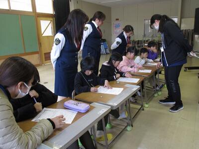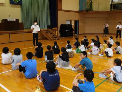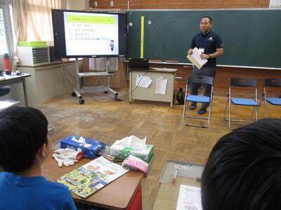 延岡警察署から3名の方が来てくださいました。内容は、プライベートゾーンのことでした。水着で隠れる場所がプライベートゾーンであることを知り、自分も相手も大事にする、触られたら「イヤ!」とはっきり言う、または大人に相談する、ことなどを学びました。授業の後半は、低・中・高学年に分かれて発達段階に合った学習をしました。