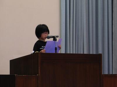 閉会行事では、会場の全員で「もみじ」を合唱しました。