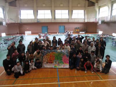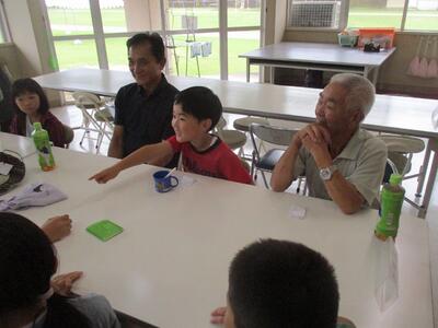 会場の準備中もおじいちゃん、おばあちゃん、地域の方々とのふれあいがありました。