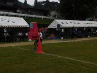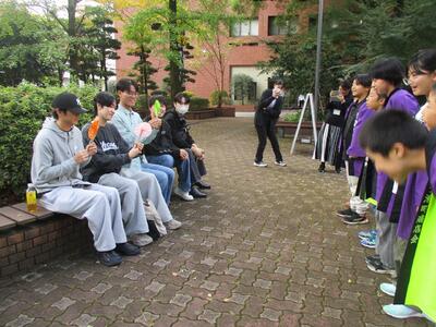 まずは色を決めるくじ引き順をめぐって団長・副団長が競技をしました。