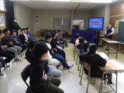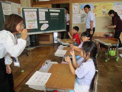 今回、栄養教諭の先生にご指導いただいた3・4年生は、「噛むことのよさ」について学びました。しっかりと噛むことで消化を助け、血流をよくしたり虫歯を予防したりすることにもつながることを教えていただきました。また、パンとスルメイカを嚙み比べる体験をとおして、やわらかい食べ物ばかりではなく、時には噛み応えのある食べ物を食すことが大事であることを実感していました。ぜひ、日常生活で実践してほしいです。
