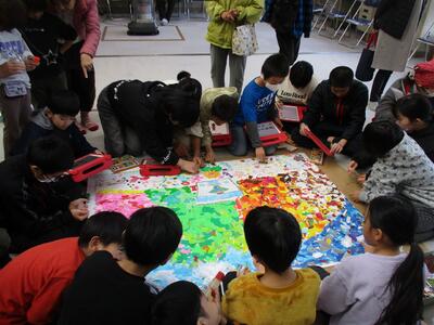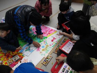 次に、5・6年生がクレヨンで絵を描き加えました。