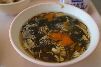 ひじきスープは、しょうゆベースの味付けで、たこごはんと一緒に食べるととてもおいしかったです。