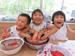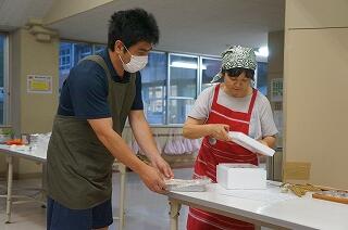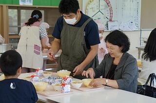 今回は、本校の教務主任がアシスタントで吉村先生のお手伝いをします(^0^)意外とエプロンが似合っています。