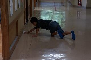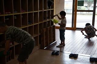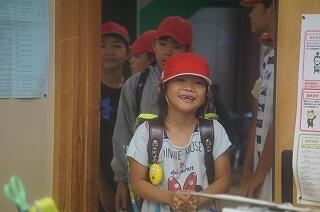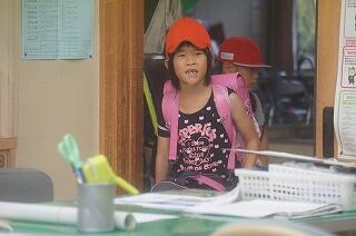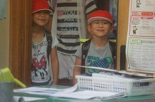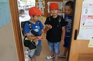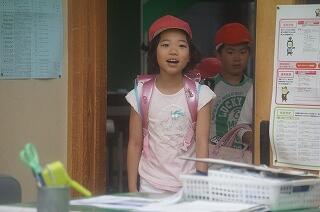自分の教室に入っていきます。これが坂本小の日課です。みんなの笑顔がはじけて、とても気持ちの良い時