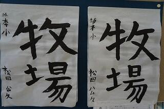 3年生になると、書写の指導内容に毛筆が入ってきます。初習字の作品が廊下に掲示してありました(^0^)