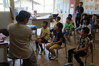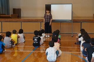 今日は、4月以来の先生たちによる読み聞かせでした。4月は、自分のクラスで読み聞かせをしましたの