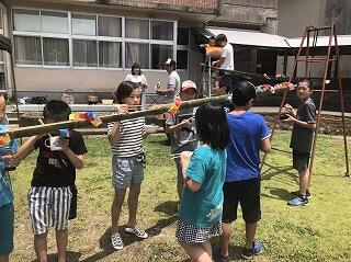 唯一参加していただいたお父さんも頑張ってくれています<(_ _)>子どもたちもできることを手伝います。