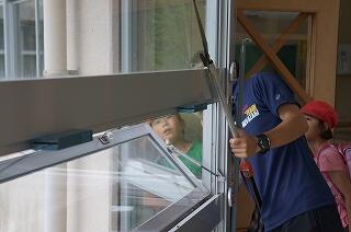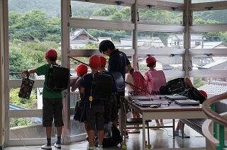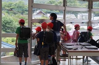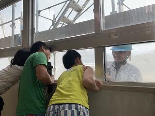 まるで水族館や動物園の生き物をのぞき込むかのように、3年生の子どもたちは、熱心に窓の外を見てい